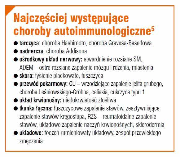 Statystyki podają, że choroby autoimmunologiczne nękają 2-8% światowej populacji, z czego 75% przypadków dotyczy kobiet. Znamy ich przyczyny i potrafimy opisać objawy, ale nie mamy na nie lekarstwa. Problem autoimmunizacji organizmu jest bowiem bardzo złożony. Co więcej, do chorób podejrzewanych o podłoże autoimmunologiczne naukowcy coraz śmielej zaliczają kolejne schorzenia o niezupełnie znanej etiologii, takie jak schizofrenia, choroba Parkinsona, POChP (przewlekła obturacyjna choroba płuc), zespół PCO (drobnotorbielowate zwyrodnienie jajników), sarkoidoza, atopowe zapalenie skóry i śródmiąższowe zapalenie pęcherza5.