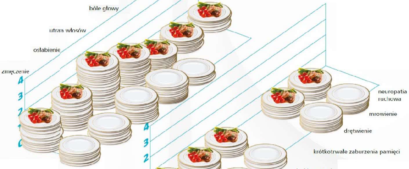 Podczas pięciu z nich pościł. Pełne talerze reprezentują efekty chemioterapii bez poszczenia, a puste talerze chemioterapię plus post. Takie efekty uboczne, jak mdłości, wymioty, rany w jamie ustnej i suchość w ustach były mniej zauważalne przez pacjentów, którzy pościli po chemioterapii.