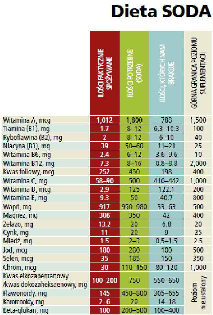 Przestudiował on ponad 4000 badań naukowych, dzięki którym obliczył poziomy SODA dla zachowania optymalnego zdrowia, oraz ilości składników odżywczych, które faktycznie spożywamy każdego dnia.