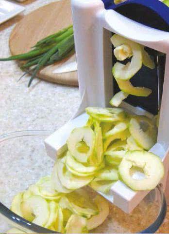 Dzięki takiemu urządzeniu można błyskawicznie przygotować spaghetti lub spiralne plasterki z cukinii i innych warzyw, a także owoców. Możesz także użyć wszystkiego, co tylko masz pod ręką. Nożem stworzysz niewielkie kostki, obieraczką – paski, a szatkownicą typu mandolina – kluski.