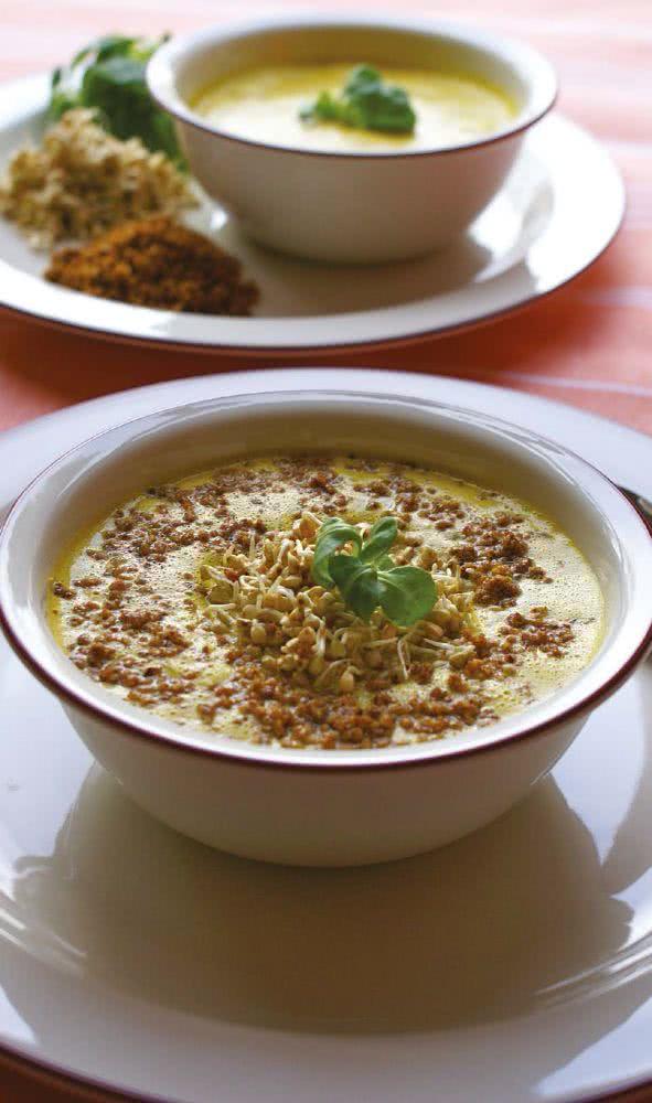 Jeśli zależy nam na tym, by w zupie coś chrupało, możemy na koniec wzbogacić ją o kiełki gryki bądź skruszone orzeszki pekan.