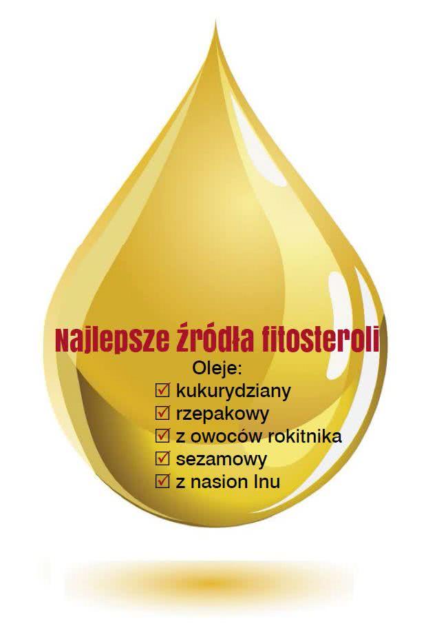 Całkowita zawartość steroli, jak i ich skład, są różne w poszczególnych olejach, we wszystkich jednak dominuje beta-sitosterol, a to jemu przypisuje się antynowotworowe właściwości. Cennym źródłem fitosteroli są oleje z rzepaku i owoców rokitnika - średnia zawartość w każdym z nich wynosi 879 mg/100 g9. Jednak prawdziwym rekordzistą okazuje się tłoczony na zimno olej kukurydziany - odnotowano w nim aż 975 mg steroli w 100 g10. Co ciekawe, w rafinowanej wersji zawartość ta była o ponad 200 mg mniejsza.