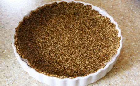 2. Rozsmaruj masę w blasze do ciasta szerokości 20 cm, po czym ugnieć ją łyżką lub palcami, aż utworzy równą, gładką powierzchnię.