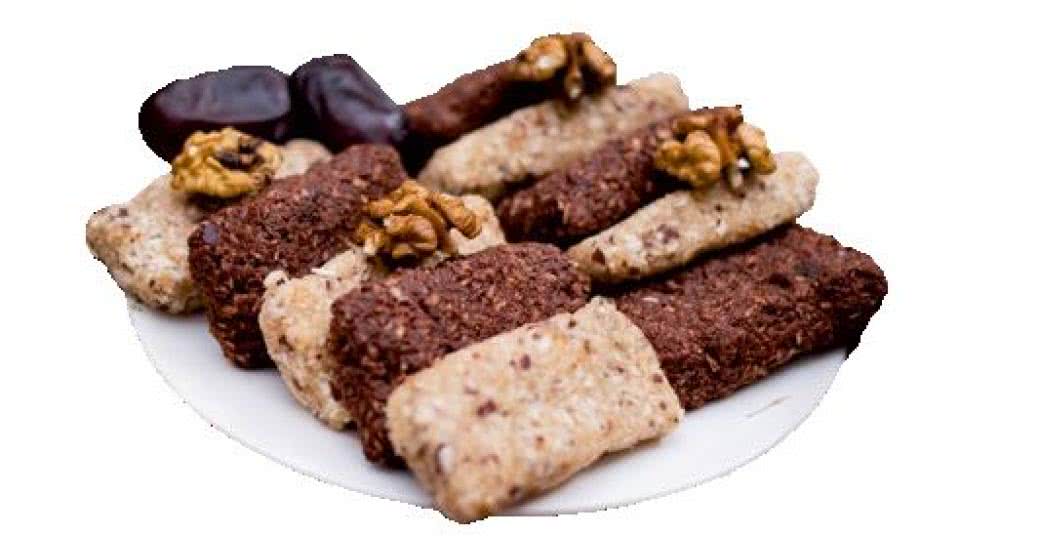 Składniki: daktyle; pół szklanki wody; pół szklanki zmielonych orzechów włoskich, czarnego sezamu oraz nasion goji