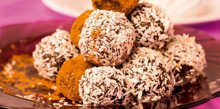Po ostygnięciu ulep kulki dowolnego rozmiaru. Możesz je obtoczyć w kakao, nasionach chia, sezamie lub innej zdrowej posypce, np. płatkach migdałów, ziarnie słonecznika lub pokruszonych orzechach.