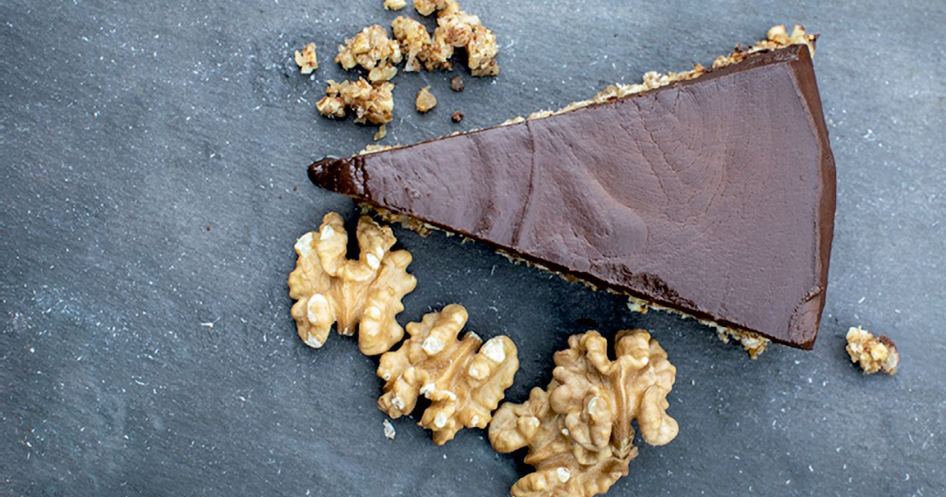 Wegańska tarta czekoladowa z geranium, kardamonem i bergamotką