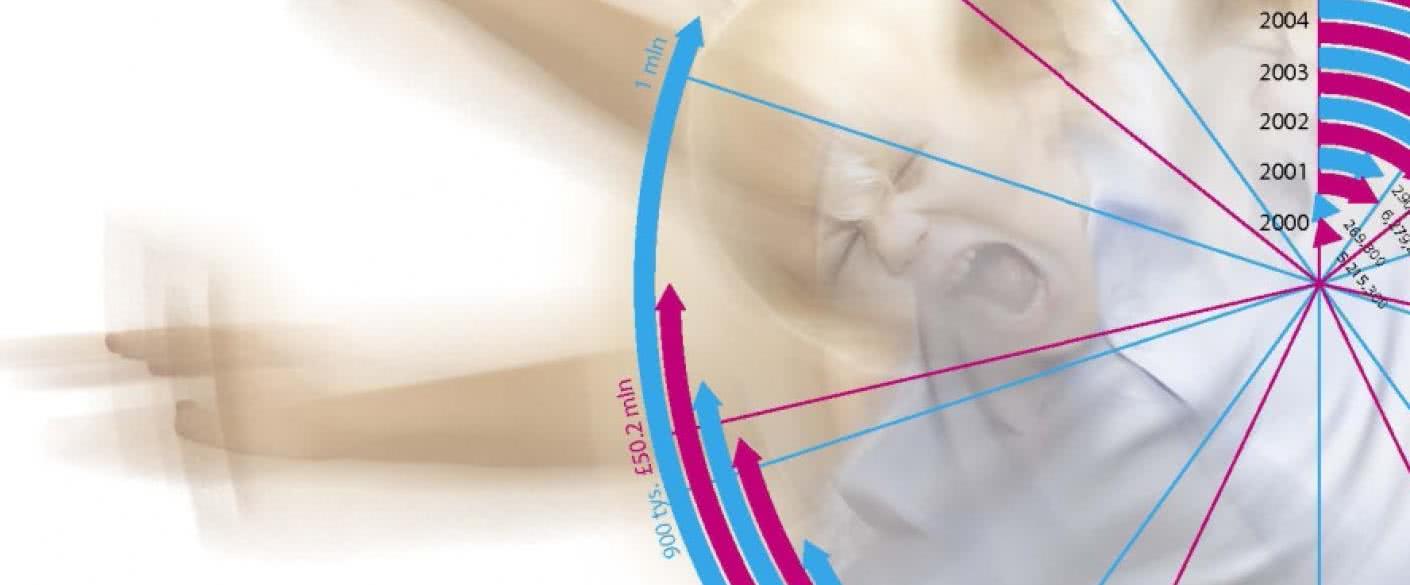 W latach 2000-2012 liczba recept na leki na ADHD drastycznie zwiększyła się w Anglii z 269,3 tys. do ponad miliona, co oznacza prawie pięciokrotny wzrost (patrz niebieskie strzałki). W tym samym okresie koszt przepisanych na ADHD leków wzrósł z ponad 5,2 do ponad 52 mln funtów (patrz różowe strzałki).