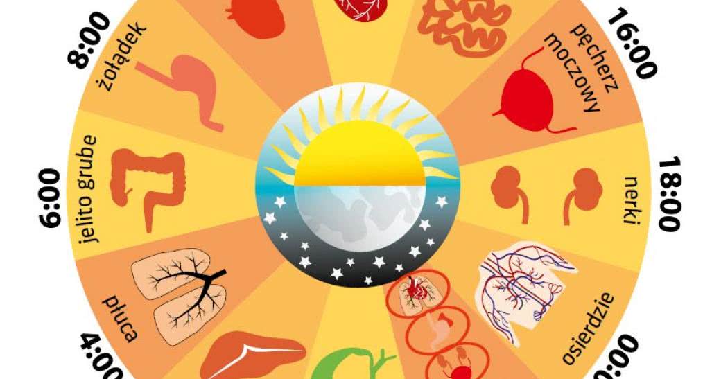 Przykładowo o godz. 5-7 rano maksimum działania przypada na jelito grube - to najlepszy czas na wypróżnienie, pozwalające oczyścić organizm. Dzięki temu żołądek (którego "czas" przypada na godz. 7-9) otrzymuje niezbędną do pracy energię, jest w stanie przyjąć i strawić pokarm (to czas na pierwszy posiłek). Następnie energia jest przekazywana do śledziony, która odpowiada za ekstrahowanie pokarmu i uczestniczy w hematopoezie (jest miejscem tworzenia krwinek białych i likwidacji czerwonych). Jeśli w odpowiednim czasie nie zjadłeś posiłku lub nie został on prawidłowo strawiony, śledziona nie otrzyma energii, co może zaburzyć skład krwi20.