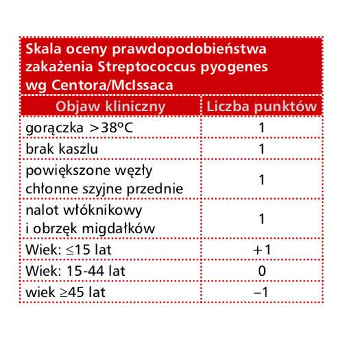 Obecnie termin angina jest zarezerwowany tylko dla zapalenia migdałków podniebiennych. Te wywołane przez paciorkowce nazywamy "anginami białymi" w odróżnieniu od "czerwonych", które powodują wirusy. W celu oceny prawdopodobieństwa etiologii paciorkowcowej, co będzie wskazaniem do przepisania antybiotyku, lekarze stosują skalę Centora/McIssaca (patrz: ramka obok). Gdy pacjent otrzyma 4-5 pkt, lekarz zaleca penicylinę przez 10 dni lub w przypadku, gdy chory jest na nią uczulony - antybiotyki makrolidowe.