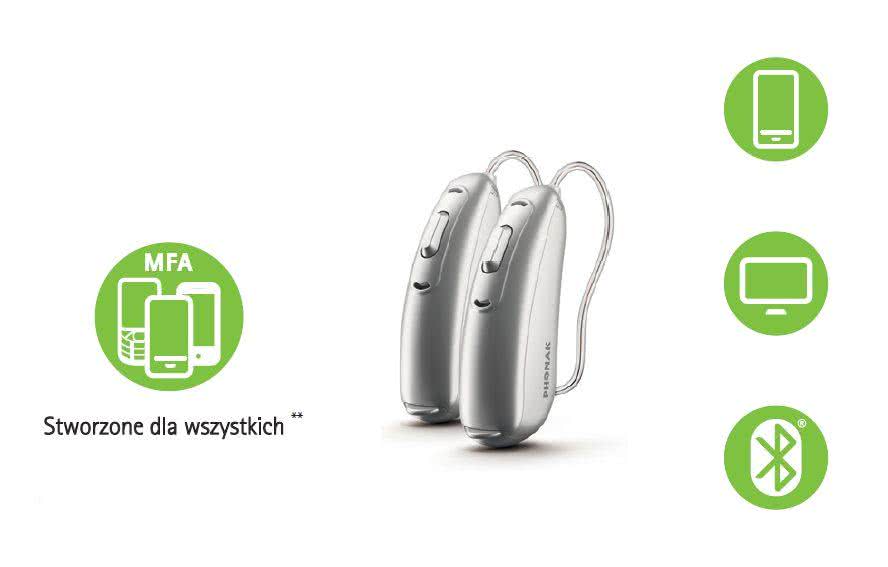 ** stworzone dla wszystkich MFA (ang. Made for all) - dot. połączeń aparatów słuchowych z telefonami komórkowymi o różnych systemach operacyjnych