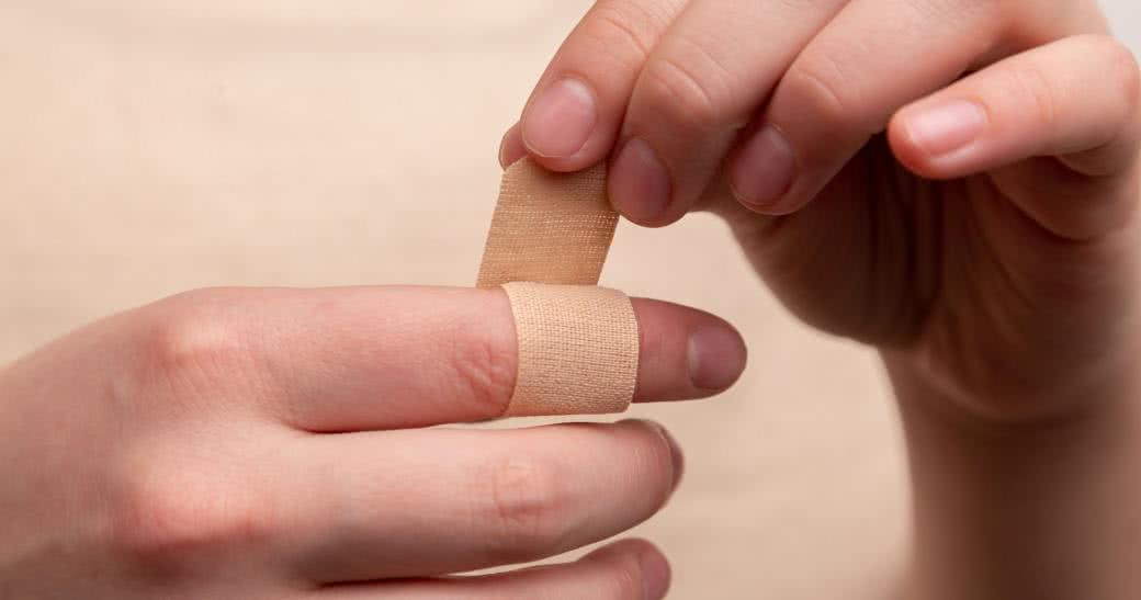 - Następnie zabezpiecz ranę jałowym opatrunkiem, a potem całość owiń bandażem dzianym. Uwaga: Nie przykładaj na ranę waty, ligniny albo chusteczek higienicznych. Lepiej też nie dotykaj jej palcami.