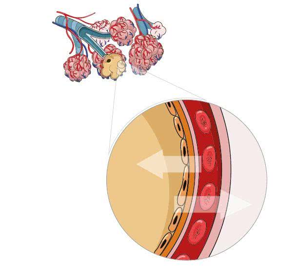 Proces ten jest jednak bardziej skomplikowany, co wynika ze złożonej budowy samych pęcherzyków płucnych1. Podstawowymi i największymi komórkami, pokrywającymi je w 90%, są pneumocyty typu I - to przede wszystkim one uczestniczą w wymianie gazowej. Drugą grupę komórek stanowią bardzo aktywne pneumocyty typu II, odpowiedzialne m.in. za procesy naprawcze i syntezę surfaktantu. Ten ostatni składa się głównie z tłuszczów i specyficznych białek. Jest on niezbędnym dla prawidłowego funkcjonowania płuc czynnikiem zmniejszającym napięcie powierzchniowe oraz stabilizującym objętość pęcherzyków płucnych2.