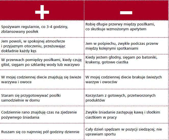 Zanim zaczniesz wprowadzać jakiekolwiek zmiany, spróbuj rzetelnie przyjrzeć się swojemu dotychczasowemu trybowi życia. Żadnych wymówek! Przyznaj się łakomstwa i nawet najbardziej niewinnych błędów dietetycznych. Zastanów się, które z poniższych stwierdzeń lepiej do Ciebie pasują!