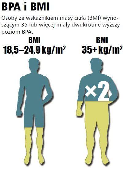 Wprawdzie wyniki testów na zwierzętach nie muszą stosować się do ludzi, lecz również badanie przeprowadzone na blisko 1 500 osobach dorosłych wykazało, że wśród uczestników z wyższym poziomem BPA w moczu ryzyko cukrzycy było o 39% wyższe15. Badacze zauważyli także, iż uczestnicy, których wskaźnik masy ciała (BMI) wynosił 35 kg/m2 lub więcej, wykazywali niemal dwukrotnie wyższy poziom BPA niż osoby z BMI w granicach 18,5-24,9 kg/m2, co ponownie sugeruje, że odpowiedzialności za cukrzycę nie ponosi otyłość jako taka, lecz spożywanie większej ilości toksycznych chemikaliów lub zatrzymywanie większej ich ilości w zapasach tkanki tłuszczowej.