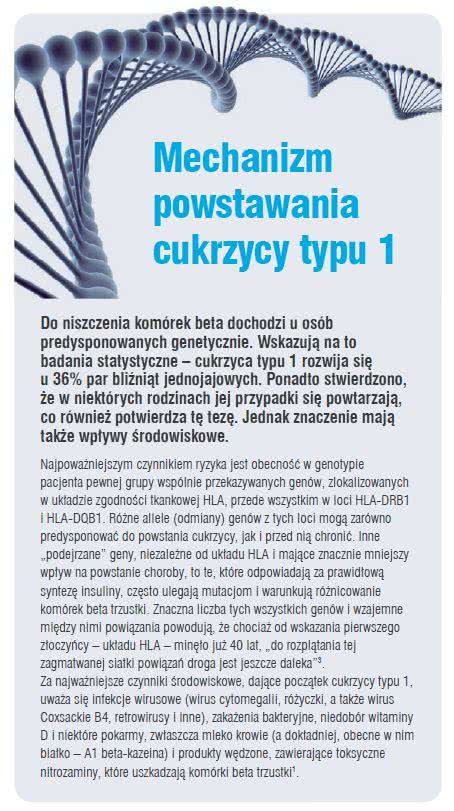 W przypadku cukrzycy typu 1 dotyczy to właśnie komórek beta trzustki. Dodajmy, że prawidłowo funkcjonujący organizm wytwarza przeciwciała skierowane przeciw antygenom wnikającym do niego z zewnątrz. Aby zapobiec wielu poważnym krótko- i długotrwałym powikłaniom, do których prowadzi nieleczona cukrzyca typu 1, niezbędne jest staranne, codzienne i trwające przez całe życie postępowanie, umożliwiające utrzymywanie glukozy na odpowiednim poziomie.
