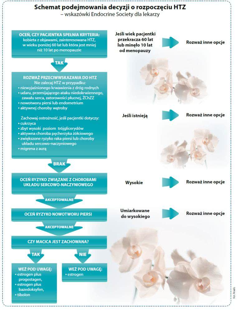 W zaleceniach Endocrine Society podkreśla się, że w przypadku kobiet rozważających HTZ lekarze powinni oceniać podstawowe ryzyko rozwoju raka piersi. Jeśli jest ono wysokie lub umiarkowane, eksperci sugerują, by zalecać kurację niehormonalną.