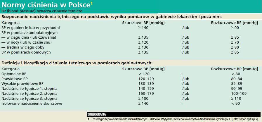 W styczniu 2013 r. w USA nadciśnienie zdefiniowano jako wartość przekraczającą 150/90 mmHg u osób powyżej 60 r.ż. i 140/90 mmHg u pozostałych pacjentów6. Ten sam próg obowiązuje dziś w Polsce (patrz ramka).