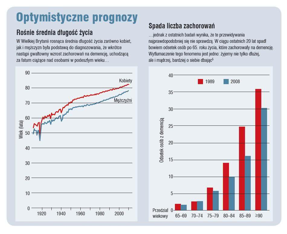 Czasopismo "The Lancet" porównuje dwa badania oceniające tempo przyrostu zachorowań na demencję w Wielkiej Brytanii. W 1994 r. było tam zarejestrowanych 650 tys. pacjentów. Prognozowana liczba chorych miała w ciągu 20 lat wzrosnąć do 900 tys. Jednak kolejne badanie, przeprowadzone według tych samych założeń metodologicznych, wykazało, że pacjentów jest o 200 tys. mniej, co budzi spory entuzjazm wśród badaczy, a i nas jako społeczeństwo motywuje, żeby zadbać o zdrowy styl życia i usprawnić umysł.