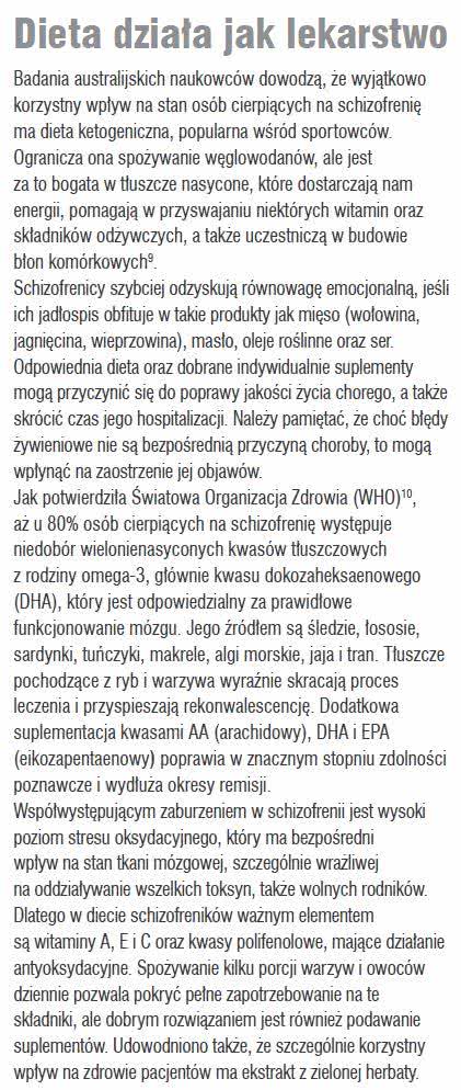 - Pawełczyk T., Pawełczyk A., Rabe-Jabłońska J., Uzupełnianie wielonienasyconych kwasów tłuszczowych omega-3 w diecie może modyfikować przebieg schizofrenii: dane z badań epidemiologicznych i klinicznych otwartych, Psychiatria i Psychologia Kliniczna, 2009