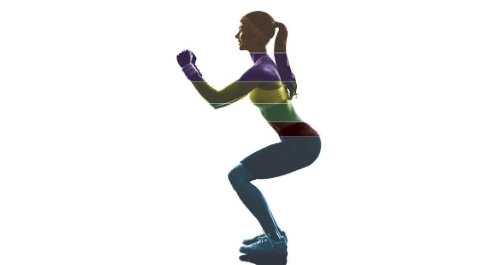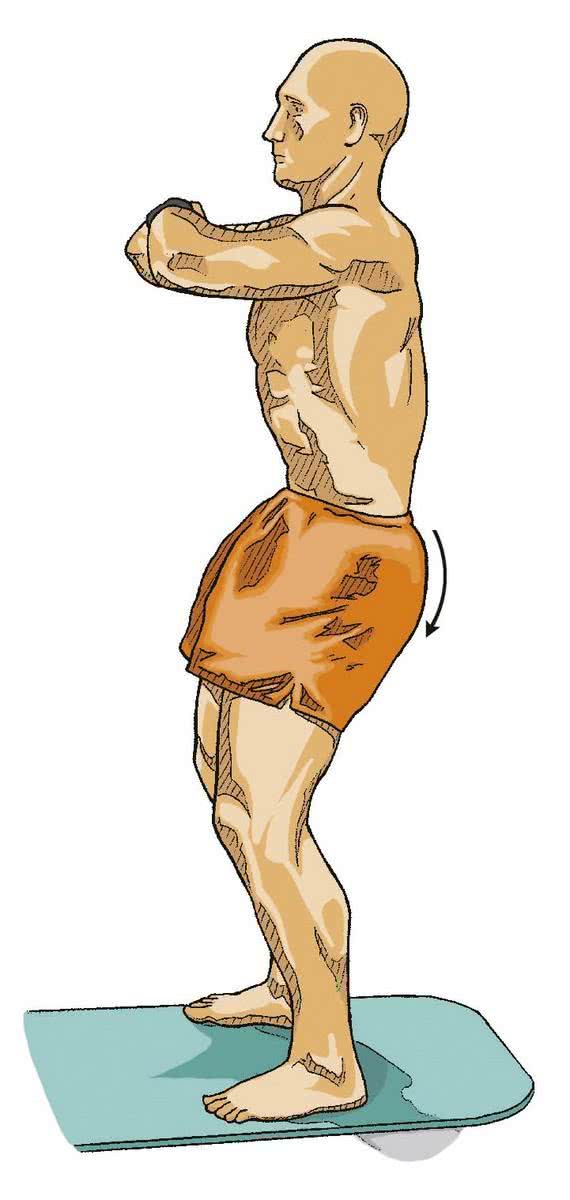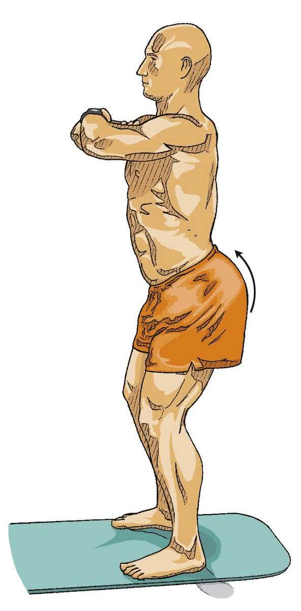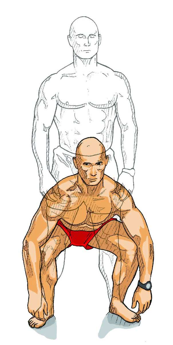 - 4 Wypuść powietrze i zrób kolejny przysiad, przesuwając ciężar ciała nieznacznie do przodu w kierunku dolnych części stóp.