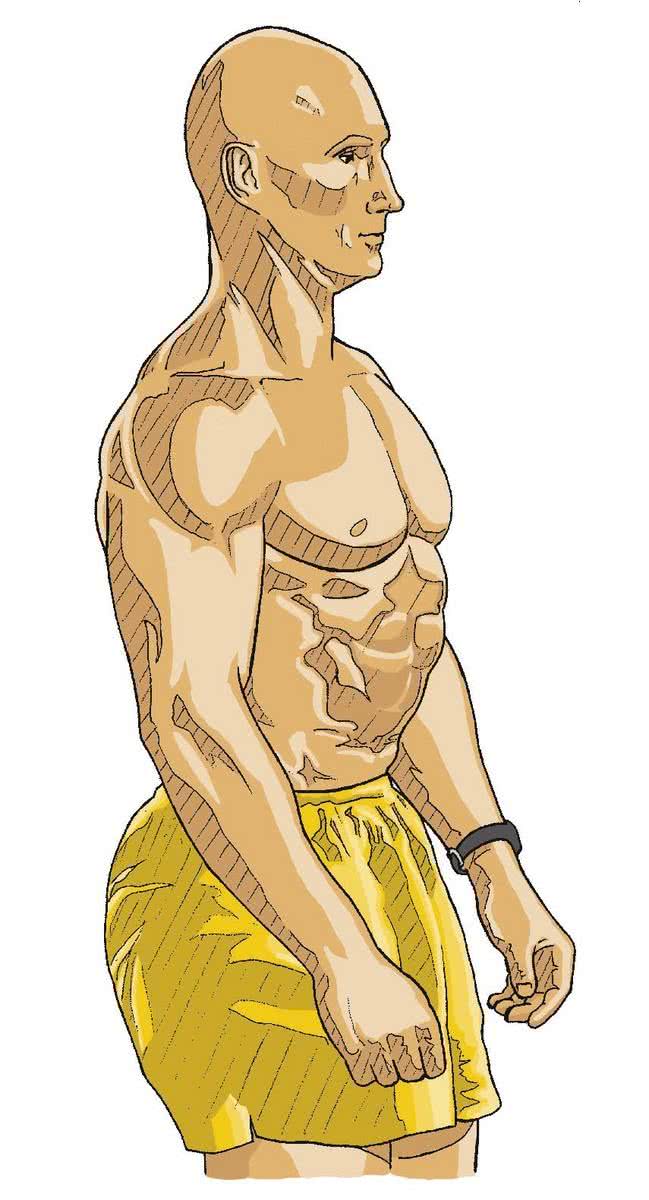 - 1Trzymaj wyprostowane ramiona po bokach ciała i rozluźnij się.