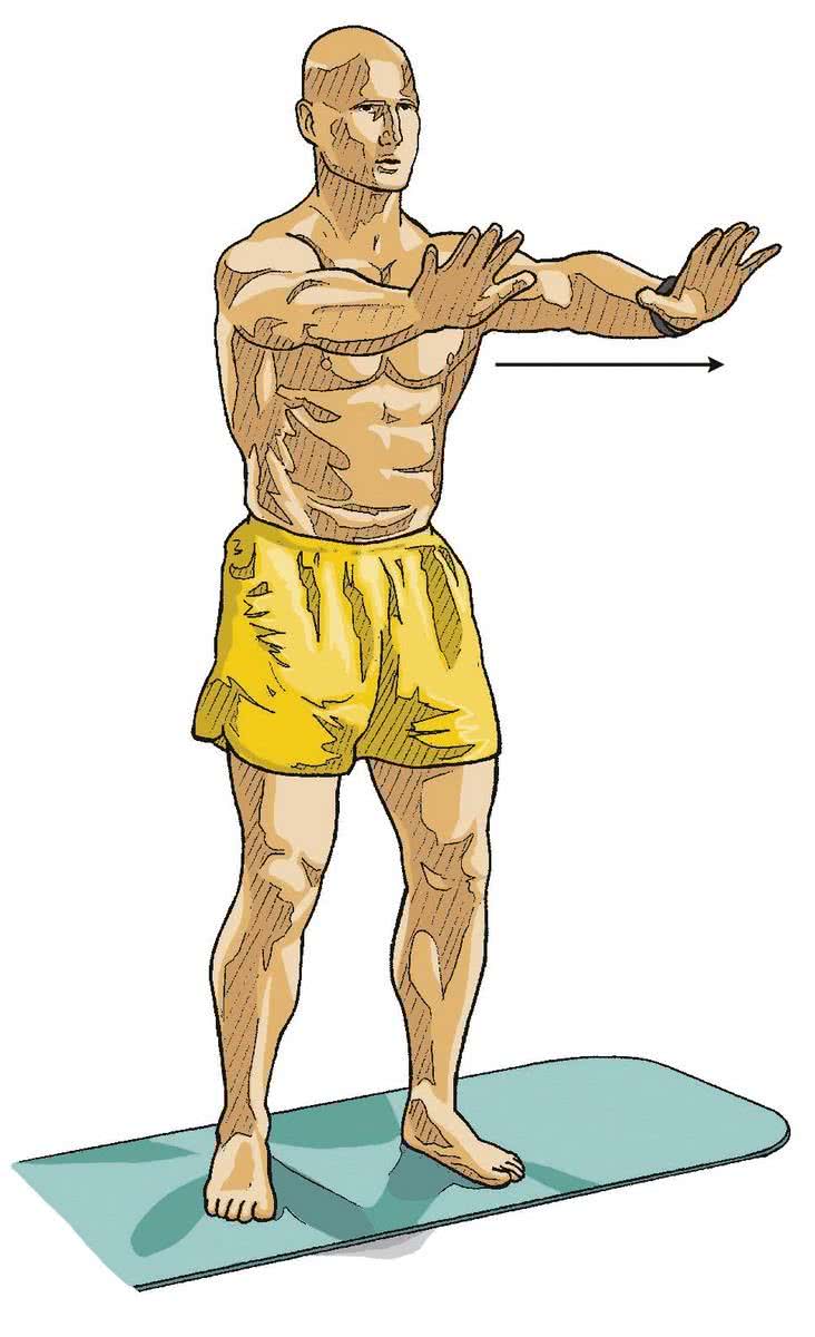 - 4Powtarzaj: wypychaj ręce ku środkowi, do przodu na lewo, do przodu na prawo oraz do tyłu na lewo i prawo.