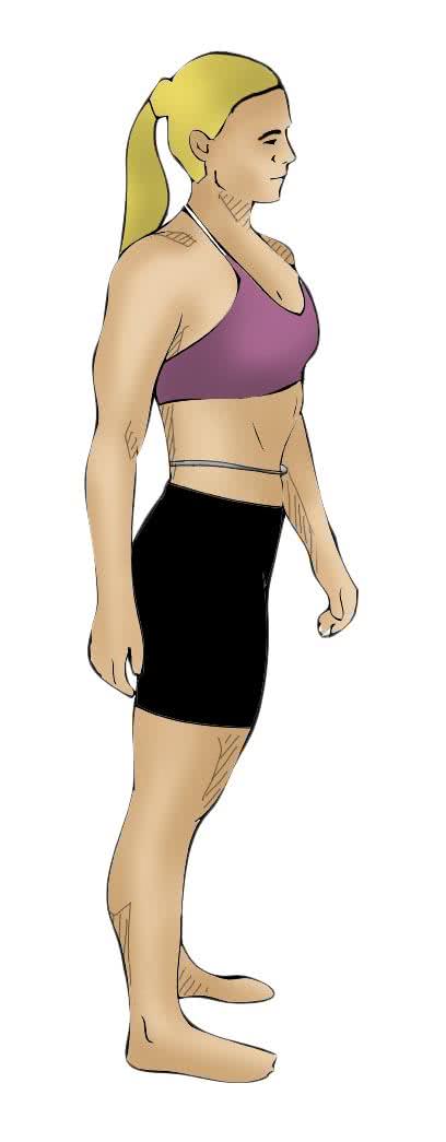 Wyobraź sobie, że stoisz obok pionu (spiczasty metalowy ciężarek zawieszony na sznurku w celu wyznaczania prostej linii pionowej) z rozluźnionymi, jedynie nieznacznie ugiętymi kolanami, tak, by mięśnie nie odczuwały wysiłku. Twoja postawa jest prawidłowa, jeśli: