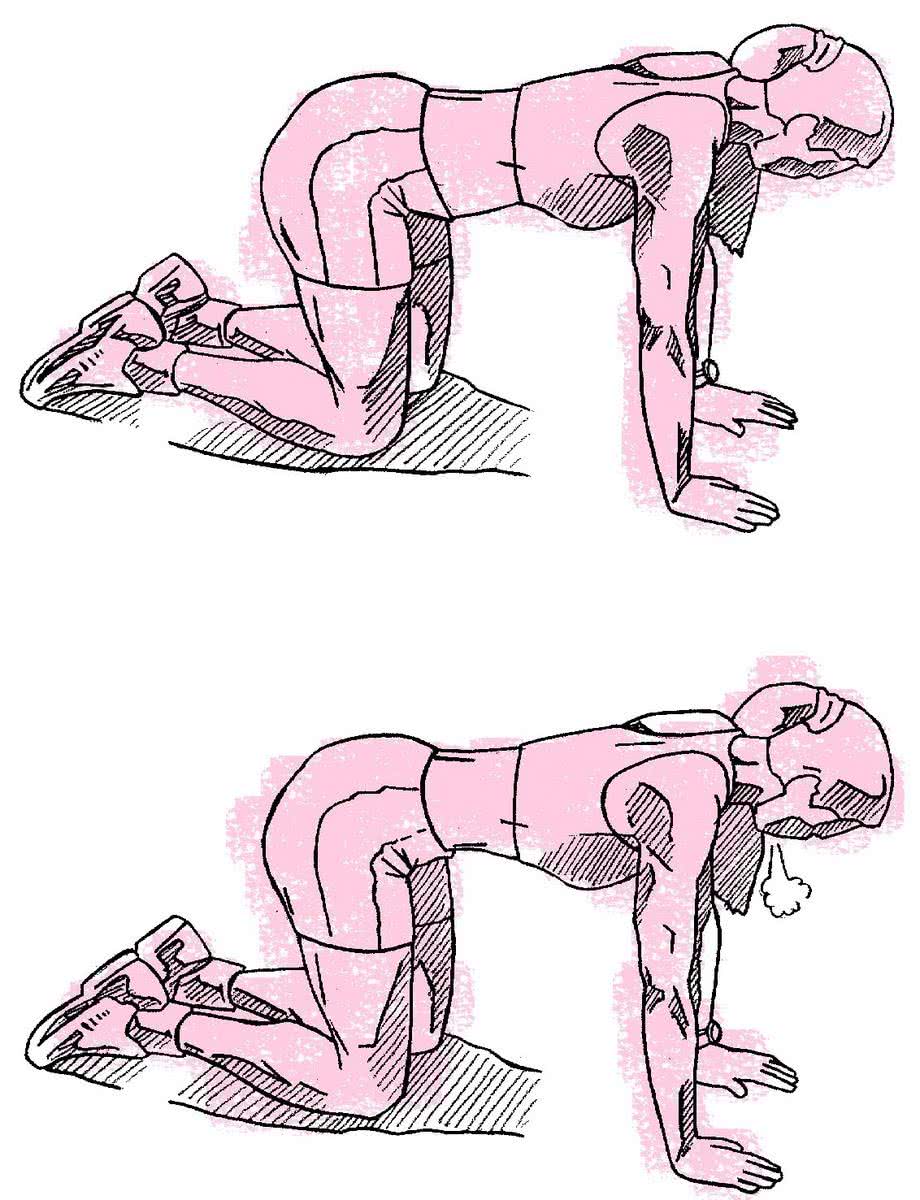 - Wypuść powietrze i przyciągnij pępek w kierunku kręgosłupa, nie zmieniając ułożenia pleców.