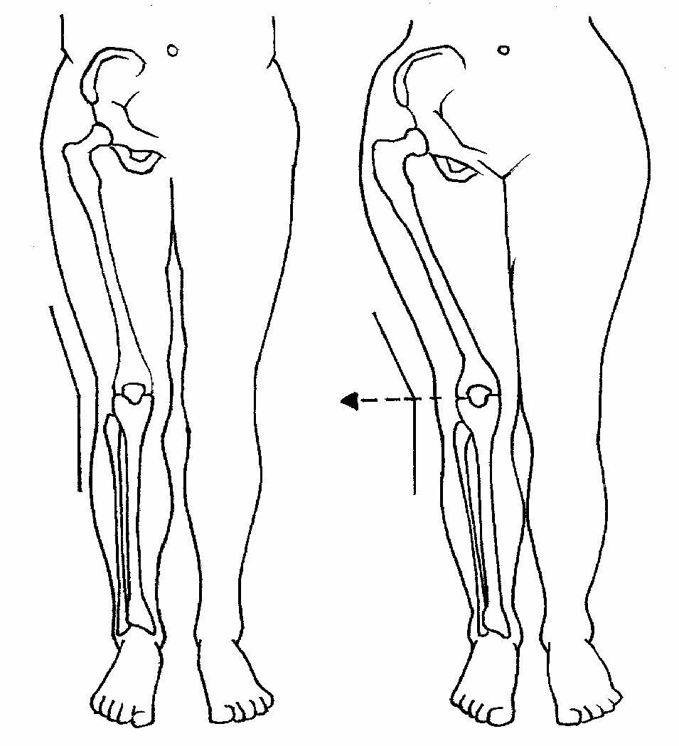 Kobieca miednica jest szersza i płytsza niż męska, przez co u kobiet obserwuje się większy kąt Q, który sprzyja deformacji kolan ku sobie (koślawość)