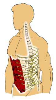 Grupa mięśni brzucha biegnie od dołu klatki piersiowej aż do kości miednicy w tym do kości łonowej. Po drodze przyłączają do nich nerwy z poszczególnych części kręgosłupa, począwszy od V kręgu piersiowego (Th5, środek pleców) i skończywszy na I kręgu lędźwiowym (L1, dół pleców).