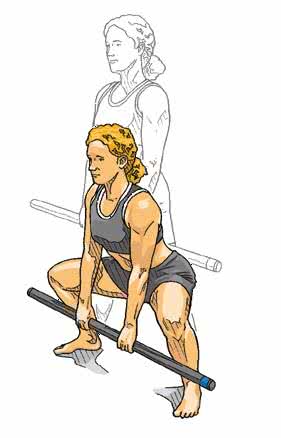 • Martwy ciąg w wersji sumo, w którym stopy są szerzej rozstawione, jest dobrą alternatywą zwłaszcza dla kobiet, gdyż taka pozycja pozwala odciążyć staw krzyżowo-biodrowy (miejsce styku kręgosłupa z miednicą).