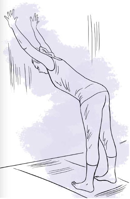 Wersja łagodna: Jeżeli otwarcie klatki piersiowej nie jest możliwe z racji utraty masy kostnej bądź okrągłych pleców, pozycję tę można wykonać, opierając dłonie o ścianę. Kręgosłup będzie się wówczas wydłużał przy zmniejszonym wysiłku. Zachowaj prawidłową pozycję szyi, pilnując, by uszy cały czas znajdowały się między ramionami.