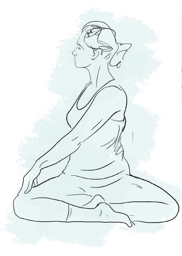 Ze zdrowym kręgosłupem: Podczas wykonywania skrętów na siedząco należy pamiętać, by cały czas wyciągać kręgosłup ku górze, inaczej siła grawitacji wywierać będzie niezdrowy ucisk na krążki międzykręgowe. Wyciągnięcie się ku górze jest o wiele istotniejsze niż głębokość skrętu. Rozpocznij ruch od brzucha, potem włącz klatkę piersiową, a następnie szyję - uzyskana w ten sposób spirala ruchu rozłoży wysiłek równomiernie zamiast szarpać poszczególne części tułowia.