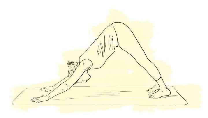 Następnie odepchnij się od podłogi, opierając się na podstawie palców środkowych, tym samym oddalając uda od tułowia i unosząc kości kulszowe. Poczuj, jak całe ciało się wyciąga, a klatka piersiowa otwiera. Daj sobie trochę czasu na oswojenie się z tą nietypową pozycją.