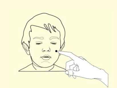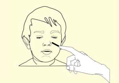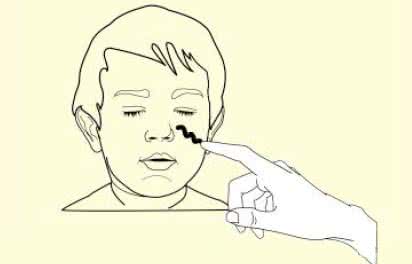 Lekko dotknij twarzy Twojego dziecka koniuszkiem palca i cofnij go, aby postawić kropkę.