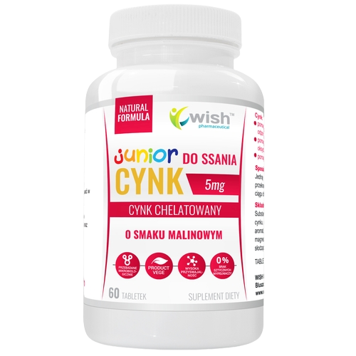Niektóre osoby zmagające się z niedoborami tego mikroelementu cierpią z powodu utrudnionego gojenia się ran, zaburzeń węchu i smaku oraz braku apetytu. Dzieci niemające wystarczającej ilości tego pierwiastka w organizmie są zagrożone zaburzeniami wzrostu. Cynk Do Ssania JUNIOR 5 mg marki Wish to preparat, który zadba o zdrowe kości i układ odpornościowy Twojego dziecka. Ma on przyjemny smak, dlatego najmłodsi nie mają problemów z jego przyjmowaniem.
