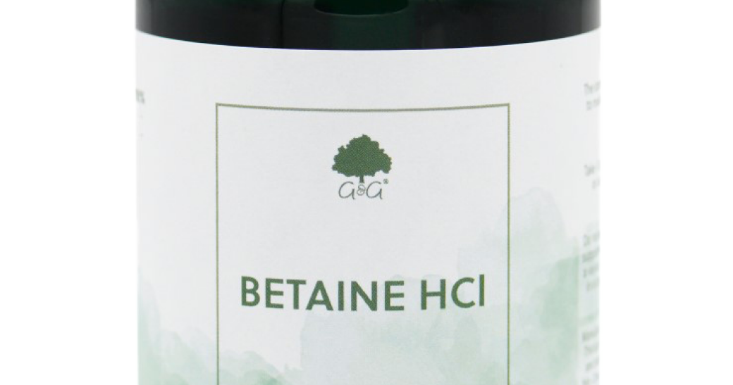 Produkt w postaci chlorowodorku betainy, zamknięty w kapsułce z roślinnej celulozy, usprawnia trawienie białek oraz wspiera syntezę aminokwasów. Kapsułki nie zawierają substancji słodzących, zbrylających ani innych, niezdrowych dodatków. Brytyjska firma G&G ma 56 lat doświadczenia w tworzeniu suplementów.