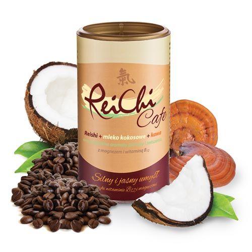 Na rynku dostępna jest ReiChi Cafe. To idealne połączenie goryczki kawy espresso, grzybka reishi, żeńszenia i guarany z łagodnością mleka kokosowego. Zawiera aromatyczne ekstrakty roślinne oraz witaminę B12 i magnez. Co ciekawe, pijąc tę kawę pomagasz fundować posiłek dla osoby dotkniętej głodem.