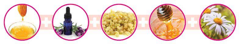 100 ml olejku ze słodkich migdałów + 5 kropel olejku lawendowego + 2 krople olejku do kadzidła + 2 krople miodu manuka + 1 kropla olejku z rumianku pospolitego