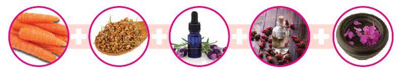 50 ml olejku z marchewki + 50 ml olejku z kiełków pszenicy + 5 kropel olejku lawendowego + 2 krople olejku różanego + 2 krople olejku z bodziszka (pelargonii)
