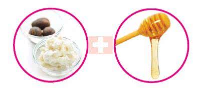 Umieść masło shea w półmisku nad gorącą wodą, po czym dodaj do niego miód mieszając.