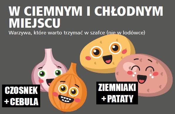 Ziemniaki i bataty (pataty) warto zaś przechowywać w chłodnym i zaciemnionym miejscu, aby nie wypuściły kiełków zbyt wcześnie.