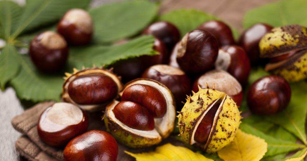 Zbierane jesienią kasztany to nie tylko świetny materiał do zabawy dla dzieci. Zarówno owoce, jak i kora czy liście drzewa zawierają bowiem składniki często stosowane zarówno w medycynie, jak i kosmetyce. To w nich znajduje się najistotniejszy składnik aktywny, czyli escyna. Jest to mieszanina saponin triterpenowych o działaniu przeciwobrzękowym, przeciwwysiękowym i zwiększającym kurczliwość naczyń żylnych1. Ważnymi składnikami kory i nasion kasztanowca są także eskulina, flawonoidy, kwercetyna, kemferol, astragalina, izokwercytyna, rutyna, olejki (kwas oleinowy i kwas linolenowy), aminokwasy (adenozyna, adenina, guanina), alantoina, cholina, kwas cytrynowy, tanina i skrobia2. Wiele z nich ma silne działanie antyoksydacyjne.