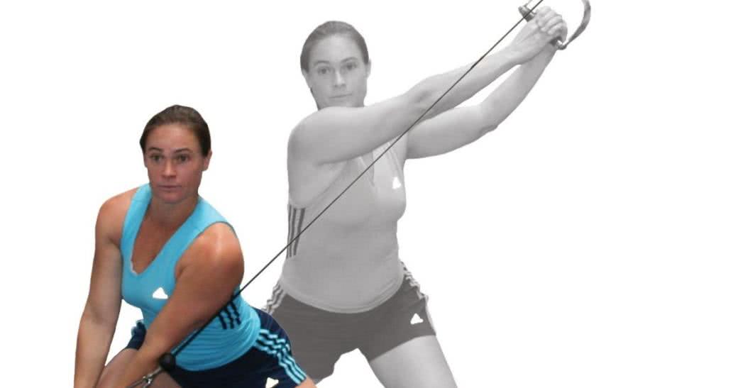 - Ścinanie drzewa to ćwiczenie z linką wyciągu jest osobnym ćwiczeniem, do którego można później dodać obciążenie, aby bardziej zaangażować kończyny dolne.