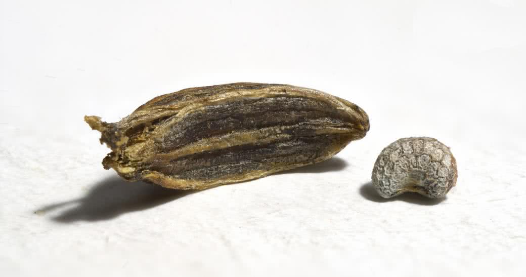 Surowiec: owoc kminku (Carvi fructus) - wysuszona rozłupka o charakterystycznym, podłużnym kształcie.