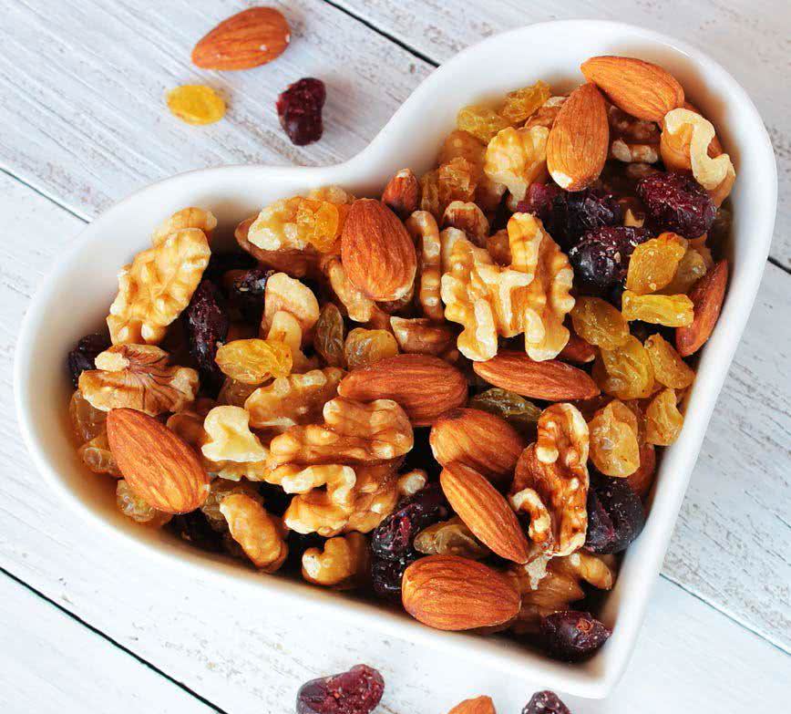 Tłuszcz zawarty w orzechach zawiera niezbędne nienasycone kwasy tłuszczowe, które obniżają poziom złego cholesterolu LDL, regulują przemianę materii oraz ograniczają odkładanie się nadmiernej tkanki tłuszczowej. Badania prowadzone w ostatnich latach pokazały, że dzienne spożycie 50-100 g migdałów, 35-68 g orzechów ziemnych lub 40-84 g orzechów włoskich wpływa na obniżenie poziomu cholesterolu całkowitego o 2-16% oraz cholesterolu LDL o 2-19%, w porównaniu do osób, które nie mają ich w jadłospisie2.